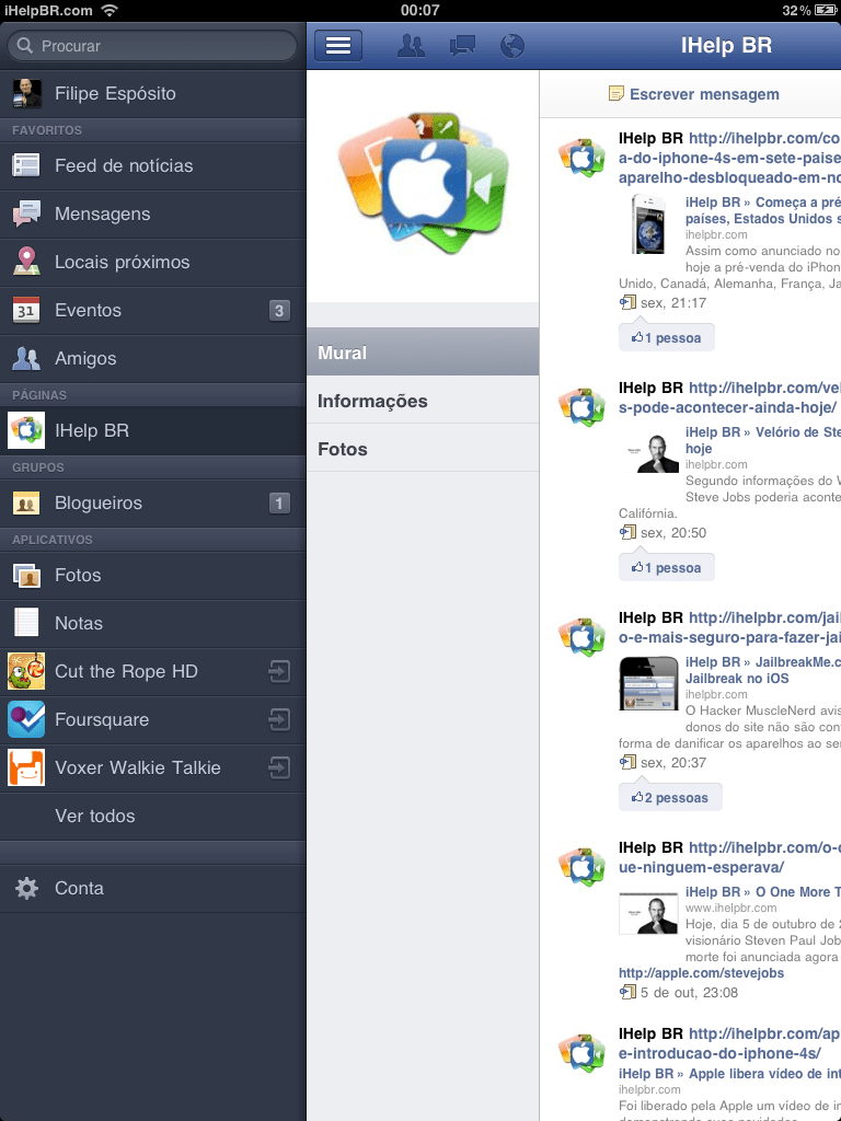 O Aplicativo do Facebook para iOS recebeu uma atualização que trouxe algo muito desejado: A versão adaptada para o iPad.