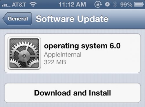 Os desenvolvedores podem atualizar o sistema nos Ajustes via “OTA” ou baixar o Firmware completo aqui. Lembrando que no momento o iOS 6 não está disponível para todos, sendo assim, tentativas de instalá-lo em um aparelho não cadastrado podem resultar na perda do aparelho.