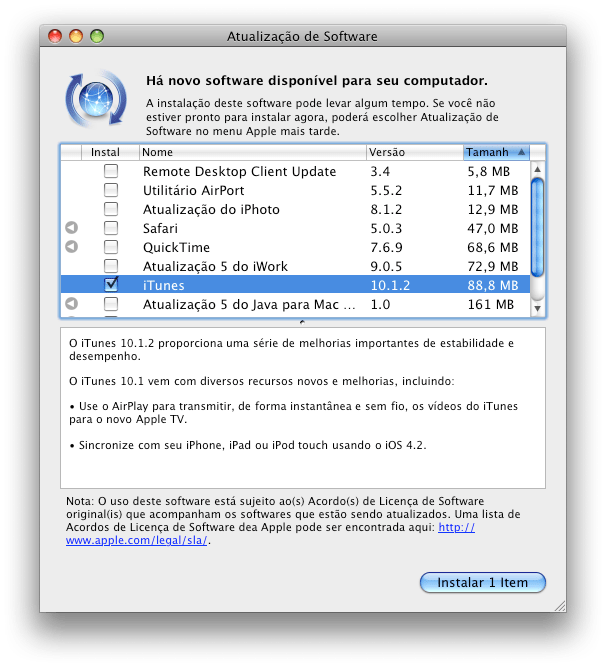 Para atualizar o seu use o Apple Update Center de seu PC/Mac ou baixe o mesmo no site oficial da Apple.