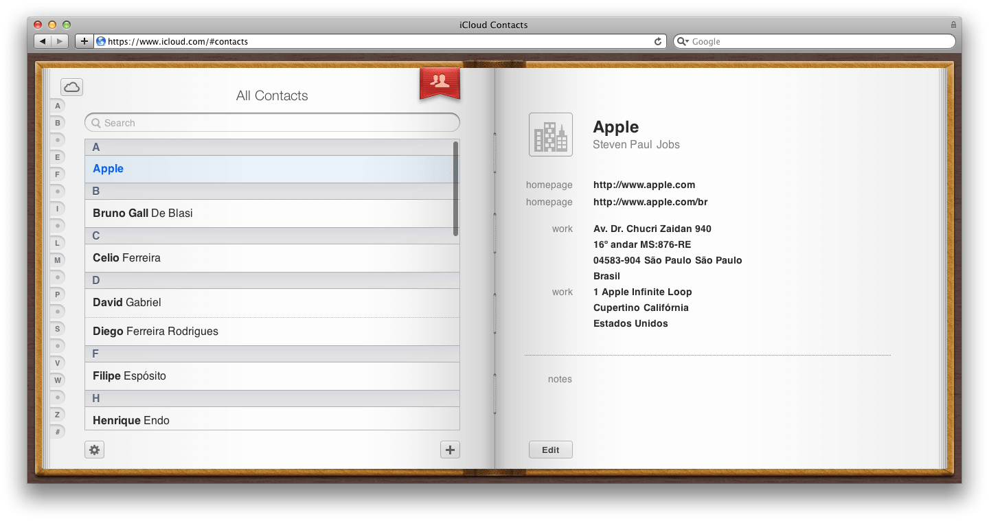 - Contatos – Adicione, modifique ou exclua contatos compartilhados entre dispositivos conectados ao iCloud.
