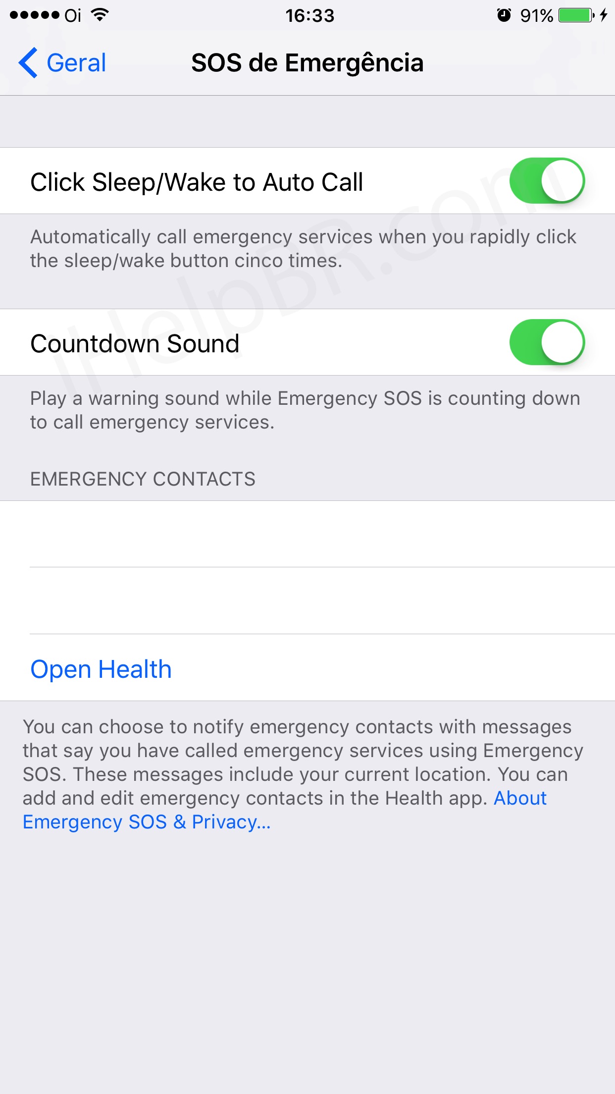 O recurso já era mencionado na primeira versão beta liberada do iOS 10.2, porém ainda não funcionava. Agora é possível definir contatos de emergência que serão avisados com uma mensagem contendo a localização atual de quem pedir socorro, pressionando rapidamente cinco vezes o botão liga/desliga.