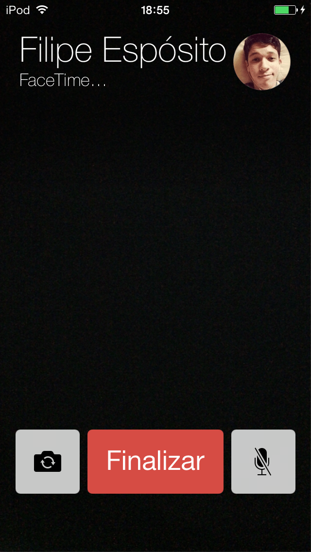 Outro aplicativo que recebeu mudanças foi o FaceTime, que ganhou uma nova interface de chamadas, onde o botão finalizar passou de um simples retângulo canto a canto para  um que é um pouco menor e menos transparente: