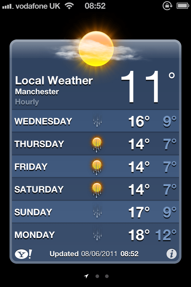 Uma das novidades do iOS 6 é o novo aplicativo de Tempo, que ganhou um novo visual muito mais bonito. Confira abaixo uma comparação com a versão antiga do aplicativo: