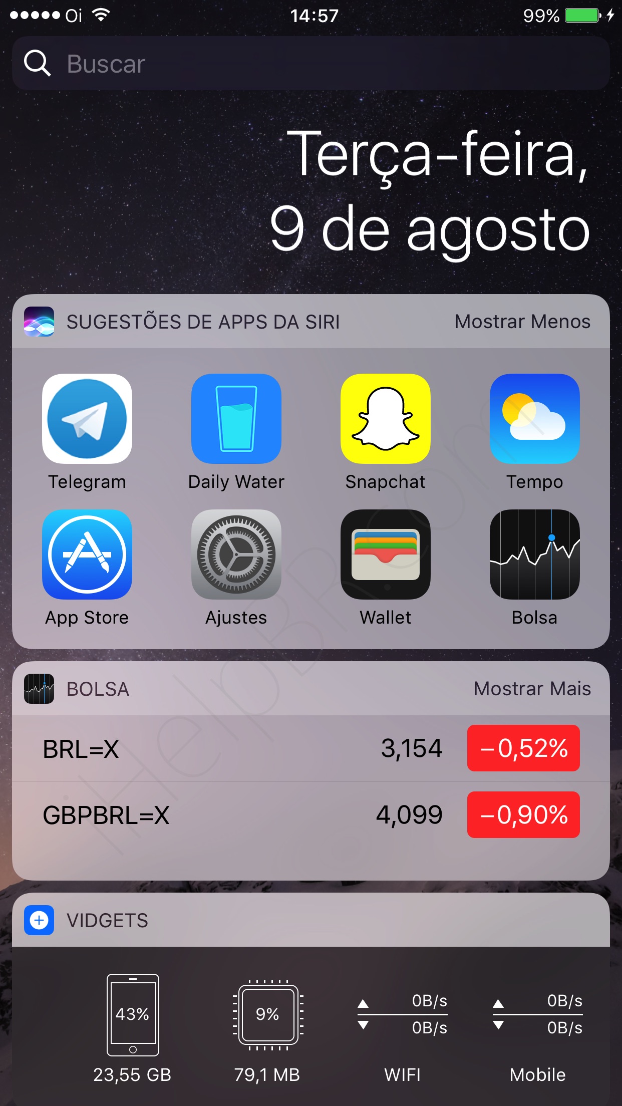 Na versão de testes anterior do iOS 10, a Apple incluiu novamente a “data de hoje” na Central de Notificações. Além de reduzir o tamanho da fonte, agora também é possível ver a data de hoje na tela inicial com os widgets.