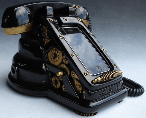 O nome do acessório é iRetrofone Steampunk e custá US$350.00, bem caro não é?