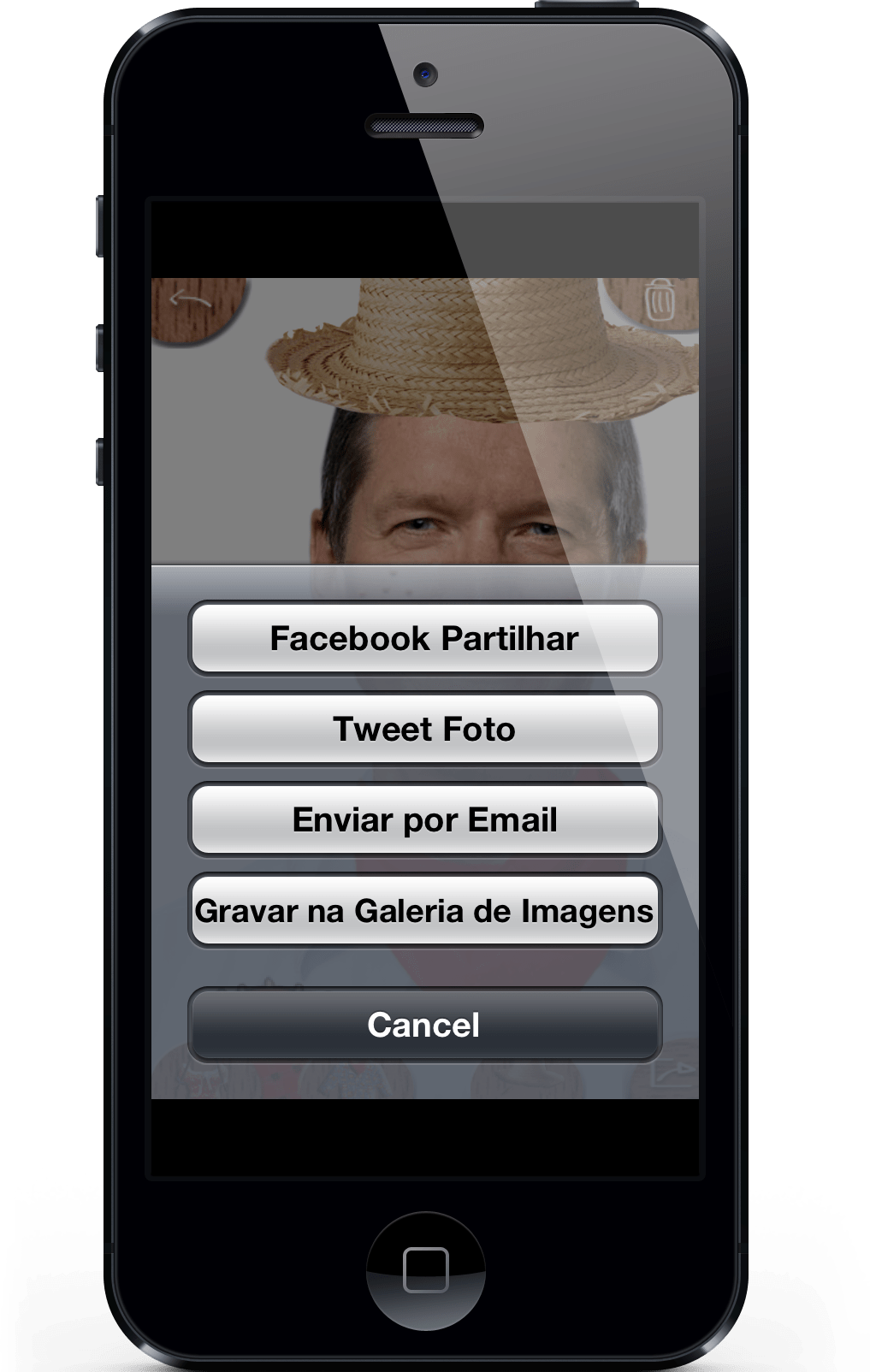 Depois que a foto já estiver pronta, você pode compartilhar ela no Facebook, Twitter, enviar por email ou simplesmente salvar no rolo da câmera.