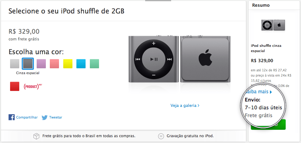Inclusive no Brasil, ao tentar comprar um iPod shuffle pela Apple Store Online, o prazo de envio para o produto é de 7 a 10 dias. Em alguns casos, o site indica para que o consumidor procure uma loja física para retirar o produto, mas, em muitos casos, nem nas próprias lojas oficiais o iPod shuffle está disponível.