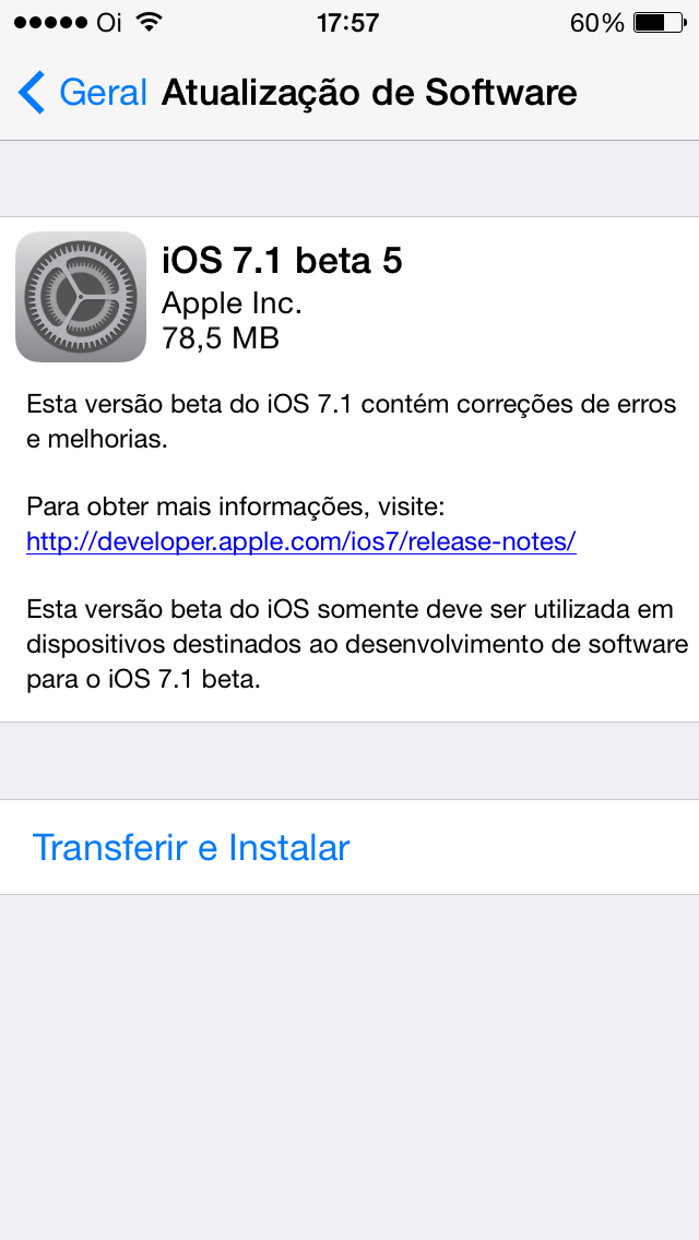 A Apple liberou hoje a quinta versão de testes (beta) do iOS 7.1 para desenvolvedores.