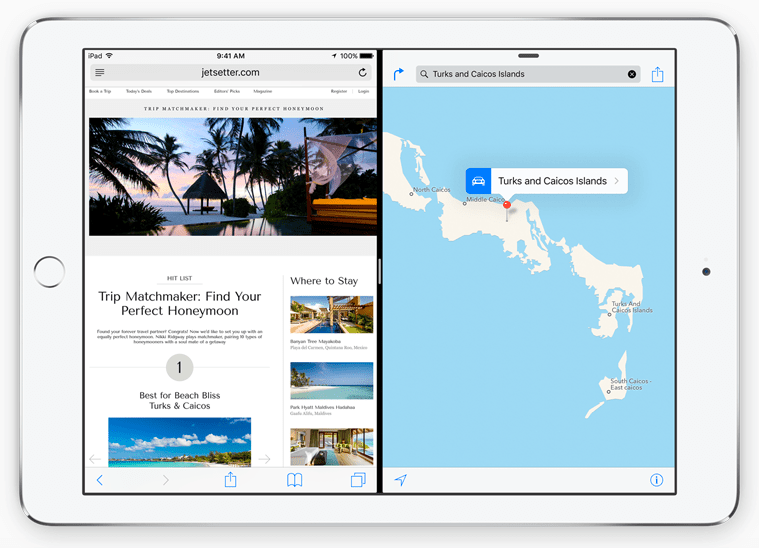 O iPad também ganhou muitas mudanças no iOS 9, como a possibilidade de executar dois aplicativos simultaneamente, recurso esperado há algum tempo. Será possível, por exemplo, abrir o aplicativo de Notas e o Safari ao mesmo tempo, ou também assistir a um vídeo enquanto navega pelo sistema.