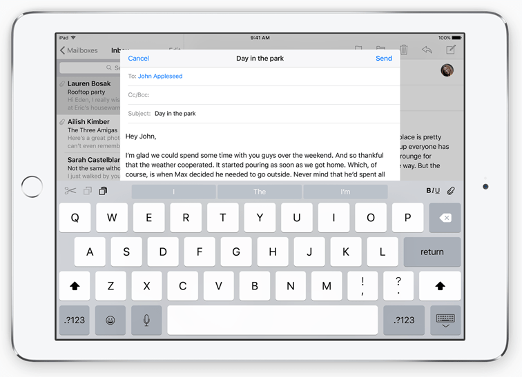 Os usuários de iPad também terão novos recursos no teclado, que agora conta com opções de copiar, colar, recorte e anexos. Também será possível fazer gestos no teclado para selecionar textos e outras coisas, além de simular um trackpad para a rolagem.