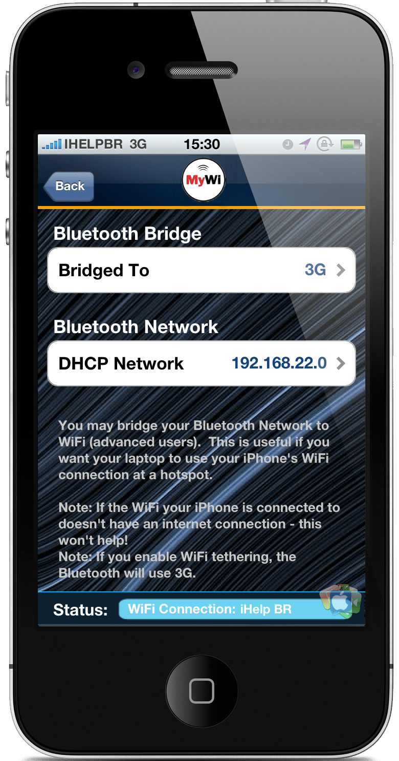 O Tweak MyWi, que permite criar uma conexão Wi-Fi usando a Rede 3G do iPhone recebeu uma grande atualização e agora permite compartilhar a internet via Bluetooth.