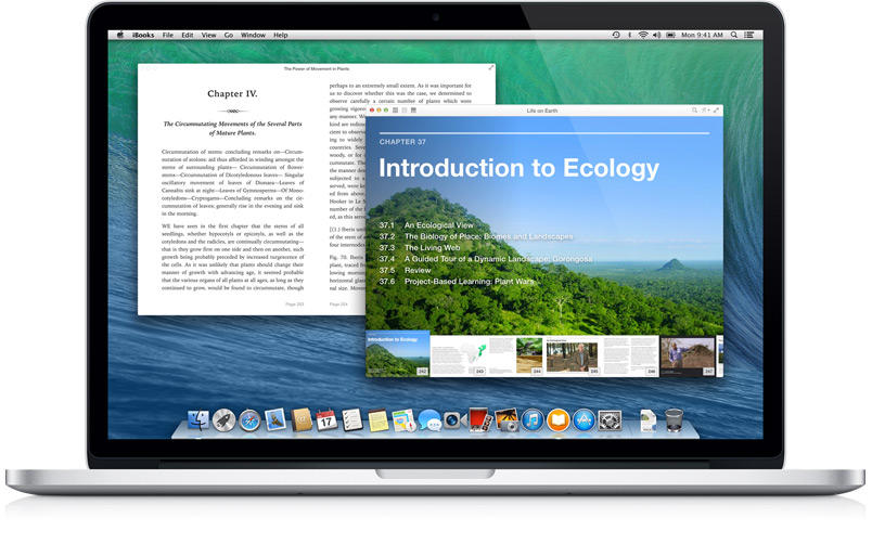 O OS X finalmente ganhou uma versão do aplicativo iBooks, para a leitura de livros digitais no Mac. Ele será compatível com todos os livros já disponíveis para o iPhone, iPod touch e iPad, incluindo os livros interativos.