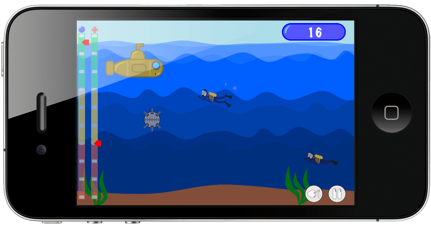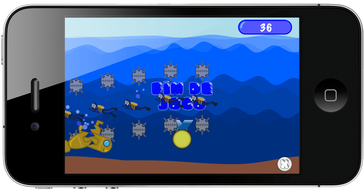 Para movimentar o submarino você pode usar os dedos ou o acelerômetro do aparelho.