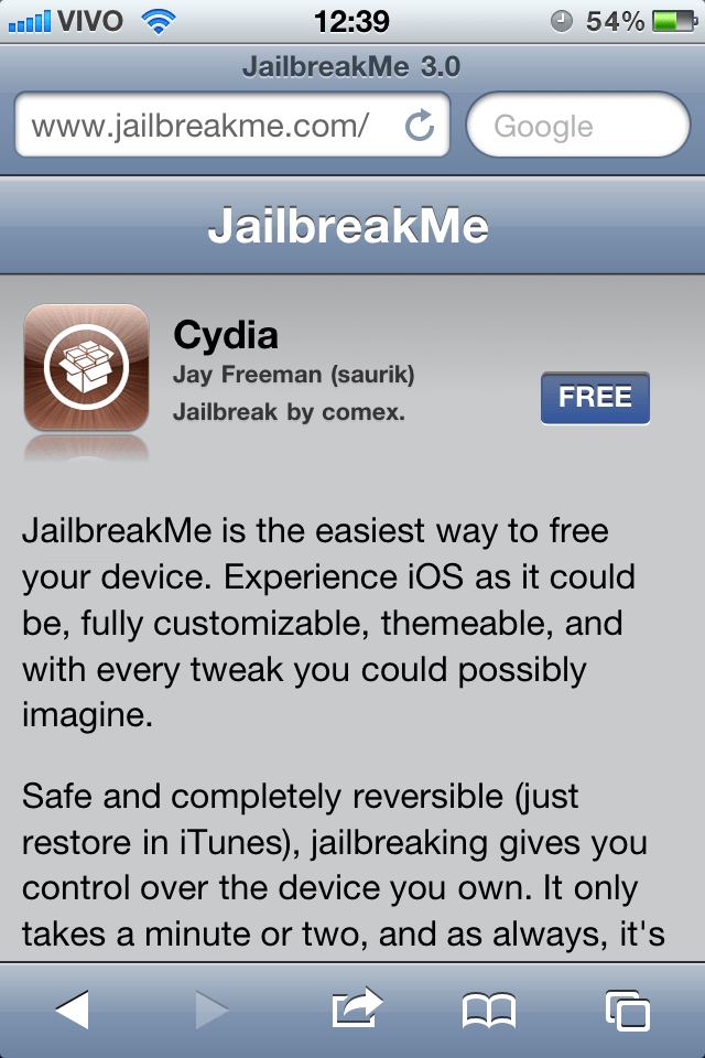1º- Abra o Safari de seu iGadget e se certifique se o mesmo está conectado a internet.Depois você vai abrir esse endereço ”JailbreakMe.com”