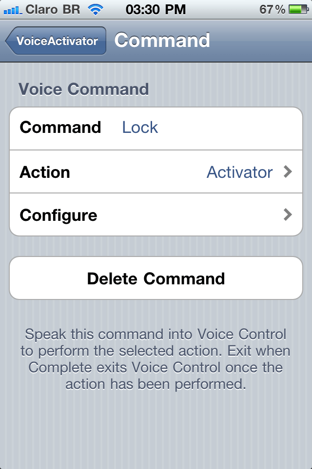 o Voice Activator está disponível no BigBoss e custa 4.99. ****Mas, você pode tê-lo de graça no repositório do XSellize( cydia.xsllize.com).